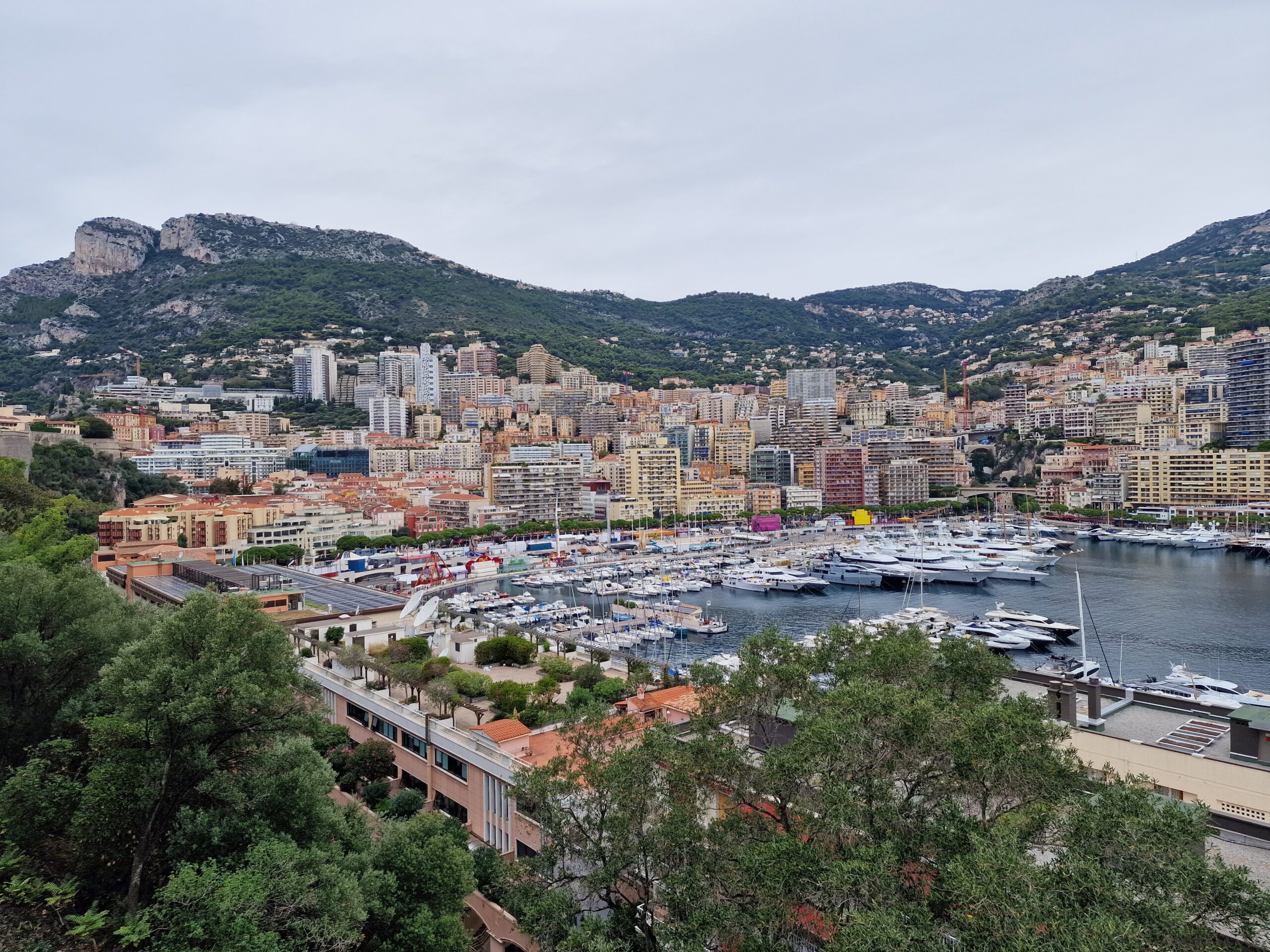 Monaco lag op slechts een half uurtje met de trein van Nice. Al tijdens de treinreis zat ik te genieten — vooral op de stukken waar de trein langs de kust reed. Het water glinsterde in de zon, het was echt een ansichtkaart waardig.
