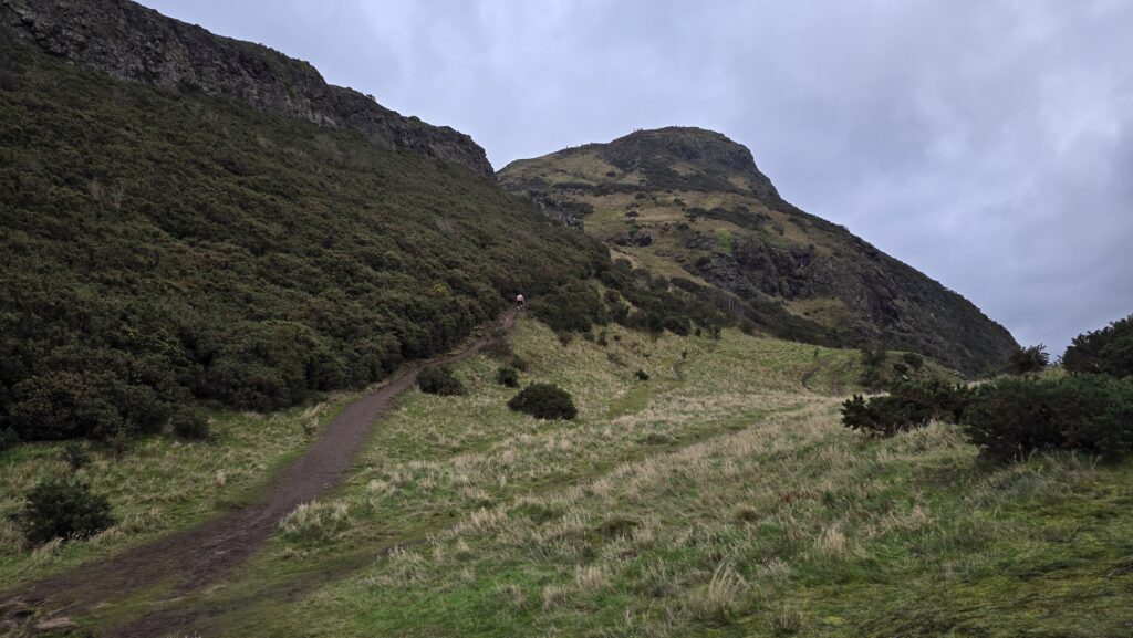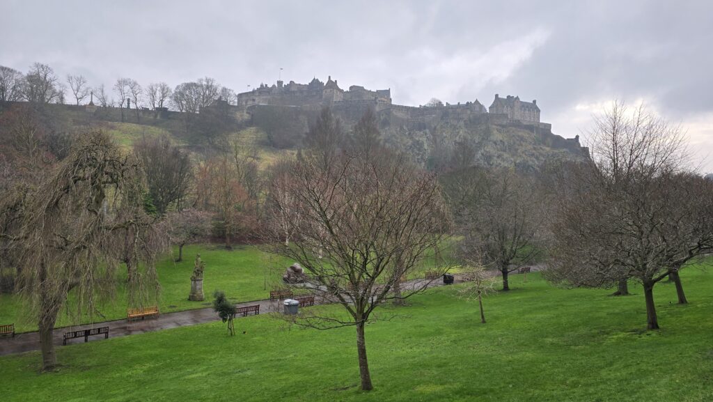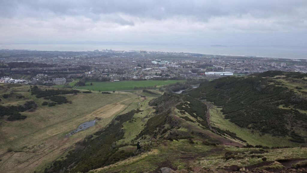 We stonden op tijd op en wonder boven wonder zonder kater. Opmerkelijk, want mijn lichaam reageert meestal al op een paar glazen alsof ik een festival van drie dagen achter de rug heb. Dit keer bleef de rekening uit. Na een cappuccino en een klein ontbijt haalden we nog een souvenir en liepen naar het startpunt van Arthur’s Seat. Een heuvel net buiten de stad met uitzicht over heel Edinburgh. Ik had hem al twee keer eerder beklommen, maar het blijft bijzonder. Inmiddels heb ik drie seizoenen gezien op die route. Dit keer was het pad nat van lichte regen, hier en daar modderig, maar daardoor ook intens groen. We liepen omhoog op ons eigen tempo. Soms ingehaald door mensen met startnummers – blijkbaar was er een wedstrijd gaande – soms stilstaand voor het uitzicht. Boven waaide de wind hard en was het koud, maar het panorama maakte alles goed. Waar we rustig omhoog waren gegaan, renden we lachend naar beneden. Gewoon omdat het kon. Beneden beloonden we onszelf met water – dat we natuurlijk waren vergeten mee te nemen – en een cappuccino. De laatste uren brachten we door met poolen en darten, uiteraard met een Schots biertje erbij, voordat we teruggingen naar het vliegveld.