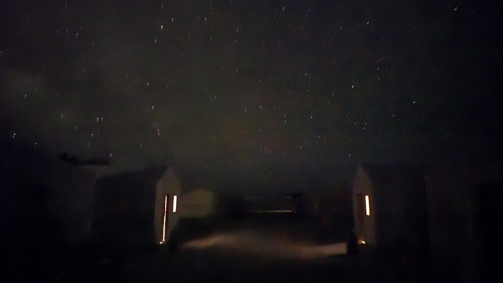 Na zonsondergang werd het kampvuur aangestoken en verzamelden we ons eromheen. Vier mannen speelden muziek op fluit en trommels, ritmes die zich herhaalden en langzaam onder je huid kropen. Daarna volgde een show met paarden die op het ritme bewogen, en later een demonstratie van hoe brood werd gebakken door deeg onder hete kolen in het zand te leggen. We aten samen onder de open hemel. Toen ik later terugliep naar mijn tent, bleef ik staan en keek omhoog. Ik had nog nooit zo’n heldere sterrenhemel gezien. Zonder lichtvervuiling was de lucht diepzwart en gevuld met ontelbare sterren. De Melkweg tekende zich als een lichte baan af boven de duinen, alsof iemand met een penseel een streep over de hemel had getrokken. Ondanks de kou bleef ik staan kijken. Het was adembenemend in de meest letterlijke zin van het woord; ik merkte dat ik mijn adem inhield.